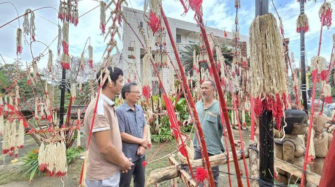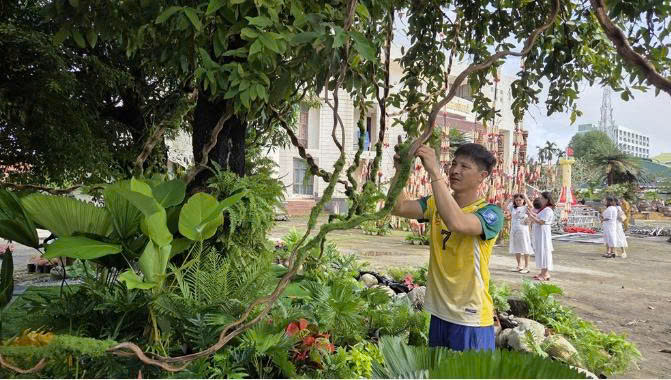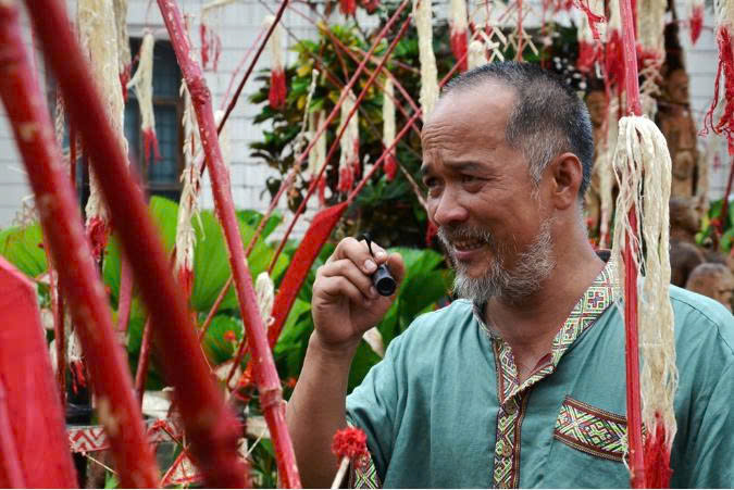 Cây nêu được trang trí những họa tiết, hoa văn đặc sắc